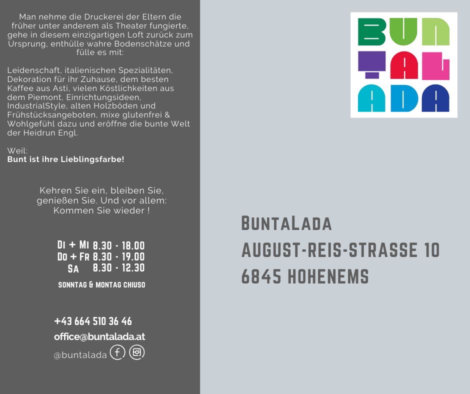 Welcome to BuntaLada - Heidrun Engl, a delightful cafe nestled in Hohenems, Austria. Located at August-Reis-Straße 10, this charming eatery specializes in offering a breakfast experience that transcends the ordinary. Guests rave about the beautifully presented dishes and the warm, friendly atmosphere. From handmade gluten-free bread to meticulously crafted breakfast plates, the menu reflects a dedication to quality and detail.